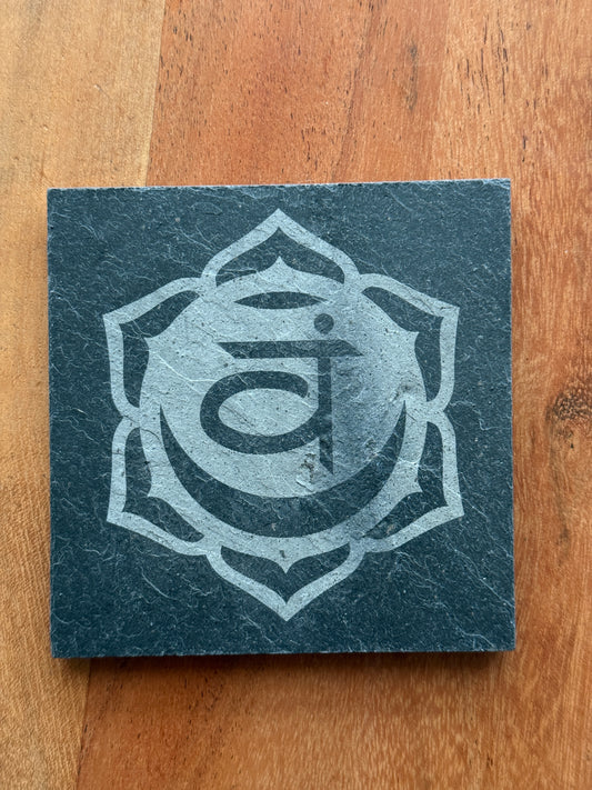 Chakren-Glasuntersetzer aus Schiefer (7er Set)